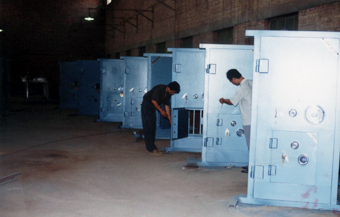武邑縣龍牌柜業(yè)有限公司原名“武邑縣金屬櫥柜廠”(黑龍港牌),由于增加注冊資金改名為“河北省龍牌保險(xiǎn)柜總廠”,于2003年企業(yè)升級為"武邑縣龍牌柜業(yè)有限公司,我廠已有三十年的生產(chǎn)歷史,是專業(yè)生產(chǎn)不銹鋼金庫門、移動金庫的廠家。廠區(qū)占地面積42154平方米,建筑面積16861平方面,設(shè)備齊全,年產(chǎn)量可達(dá)3萬臺(套)。